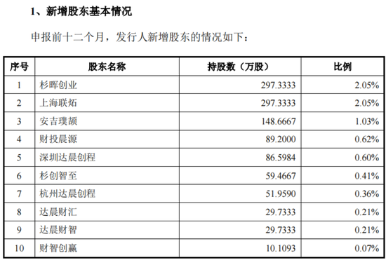 《招股书》显示,友升股份申报前12个月新增了10名股东,包括达晨财智、电广传媒(000917.SZ)、杉杉股份(600884.SH)等。