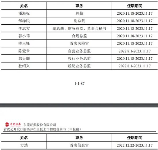 对比2015年版和2023年版招股书,东莞证券的董事长和主要高管,让行家感到既熟悉又陌生。