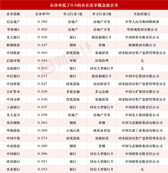 预示历史大底?A股整体破净率最高近16%,破净幅度最大的20只央企改革概念股名单一览