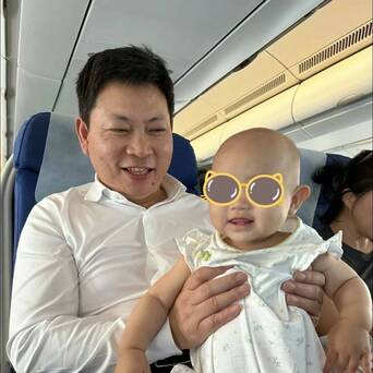 余承东飞机上抱娃合照,好随和