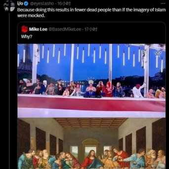 马斯克就直接在账号上骂街了,指责开幕式中河畔晚宴的一幕,与最后的晚宴对比强烈,他说的是对基督教徒的不尊重。
