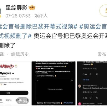 屋漏偏逢连阴雨,奥林匹克官方账号也下架了巴黎开幕式的视频。